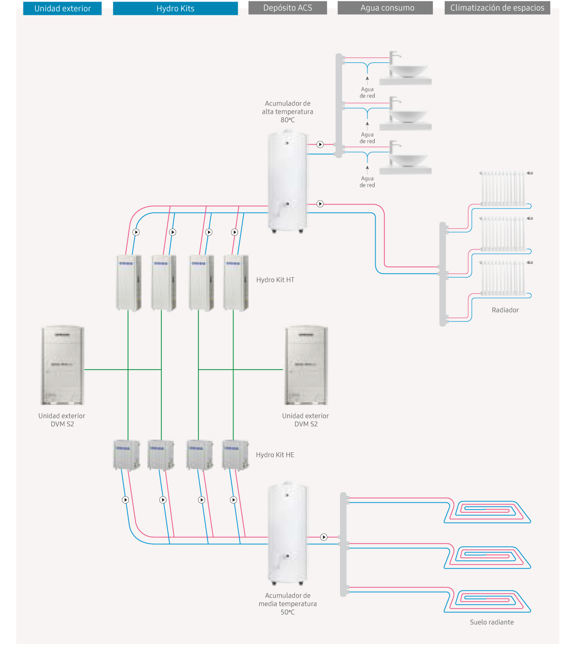 O TDM Plus é um sistema “All-in-one” para AQS, climatização de água e ar condicionado por expansão direta.